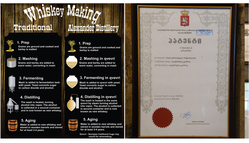 - გამოგონების მიხედვით ქვევრი გამოიყენება, როგორც დისტილაციის აპარატი. საპატენტო ტერმინოლოგიით დაცვის ობიექტია მოწყობილობა არყის (სპირტის) გამოხდისათვის. ასეთი მოწყობილობით შეიძლება გამოიხადოს ნებისმიერი ნედლეული (ჭაჭა, ხილი, ღვინო), მათ შორის მარცვლეულიც, რის შედეგადაც მიიღება მარცვლეულის სპირტი, რომელიც არის ვისკის „მასალა“.