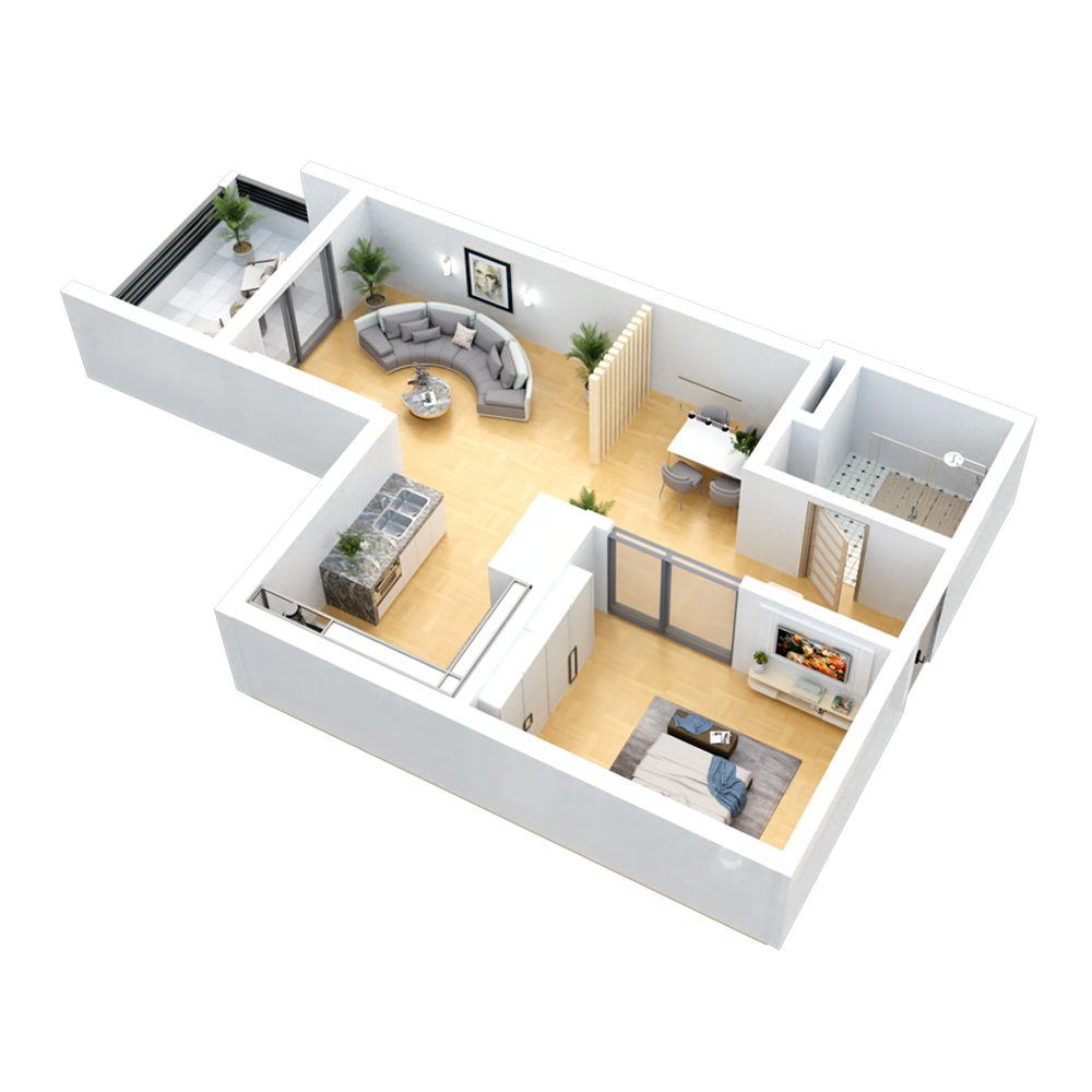 ბინა 44 m²