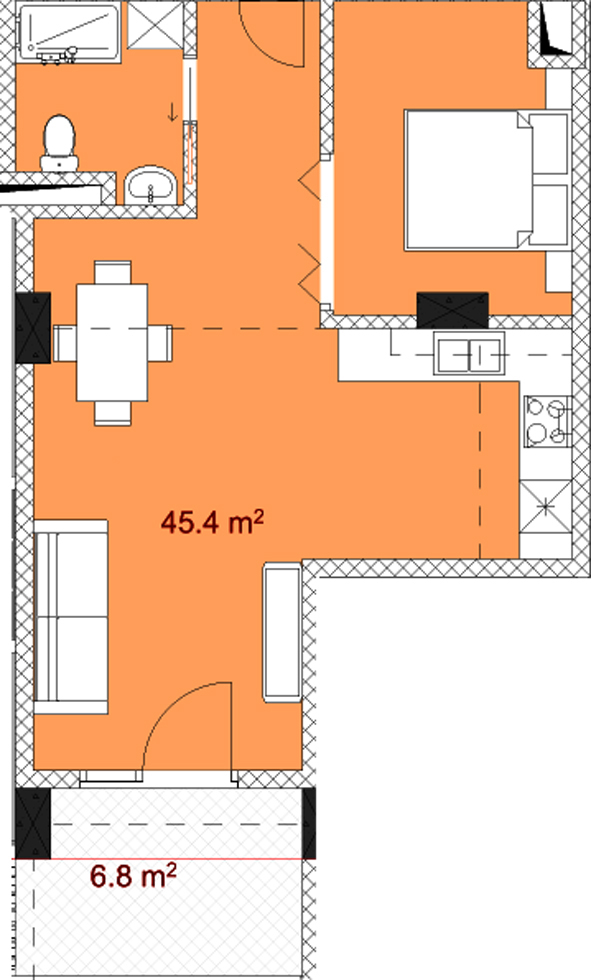 საცხოვრებელი.: 45.4 m²