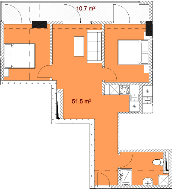 ბინა 44 m²