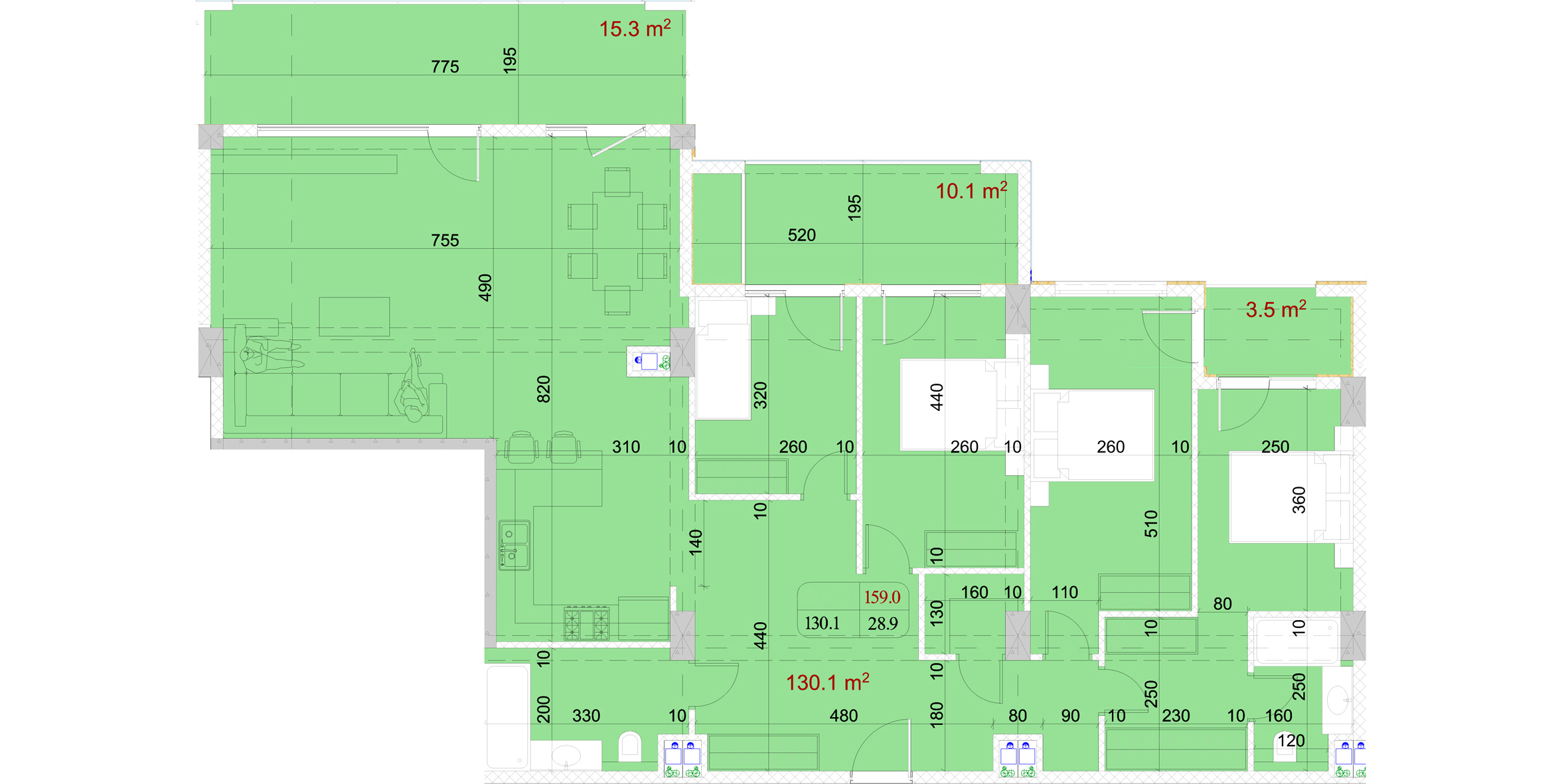 საცხოვრებელი.:130.1 m²