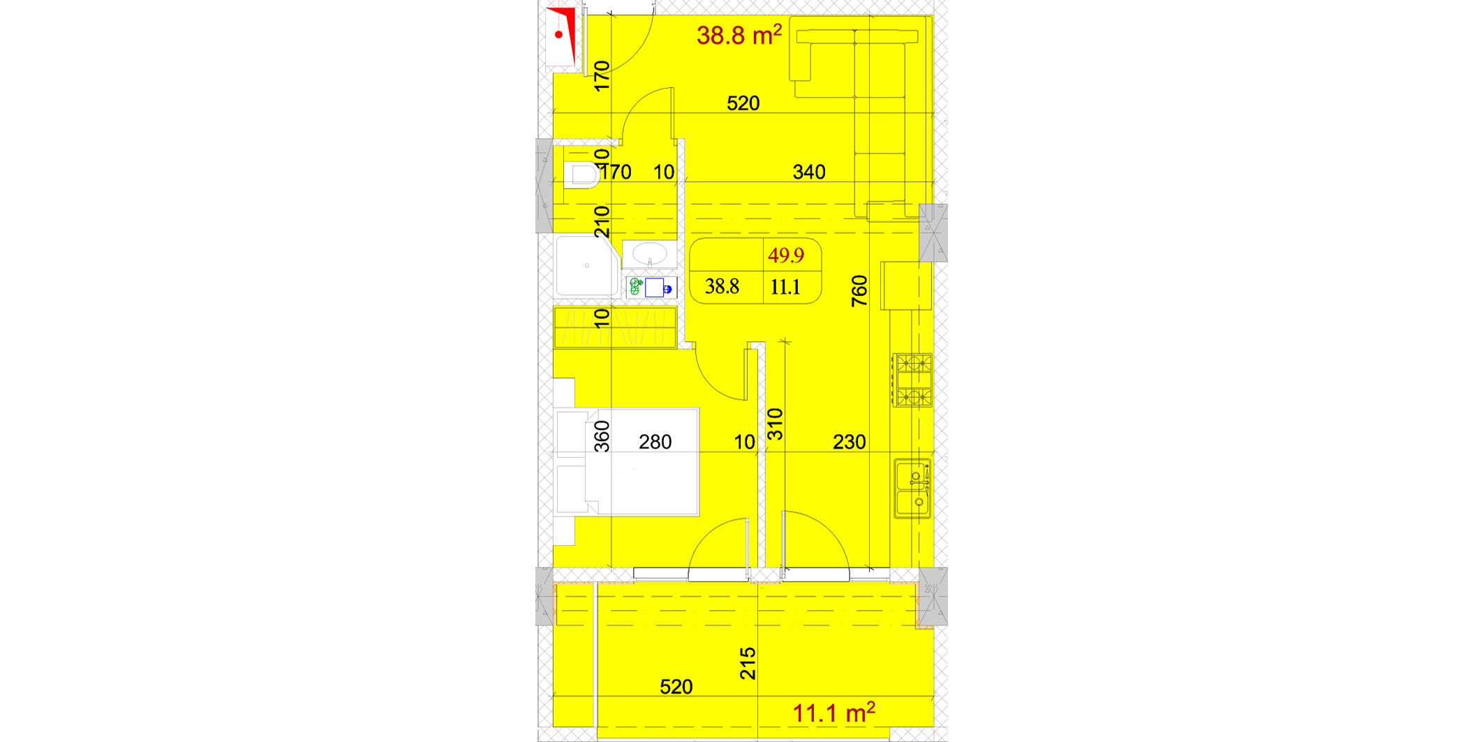 საერთო ფართი.: 49.9 m²