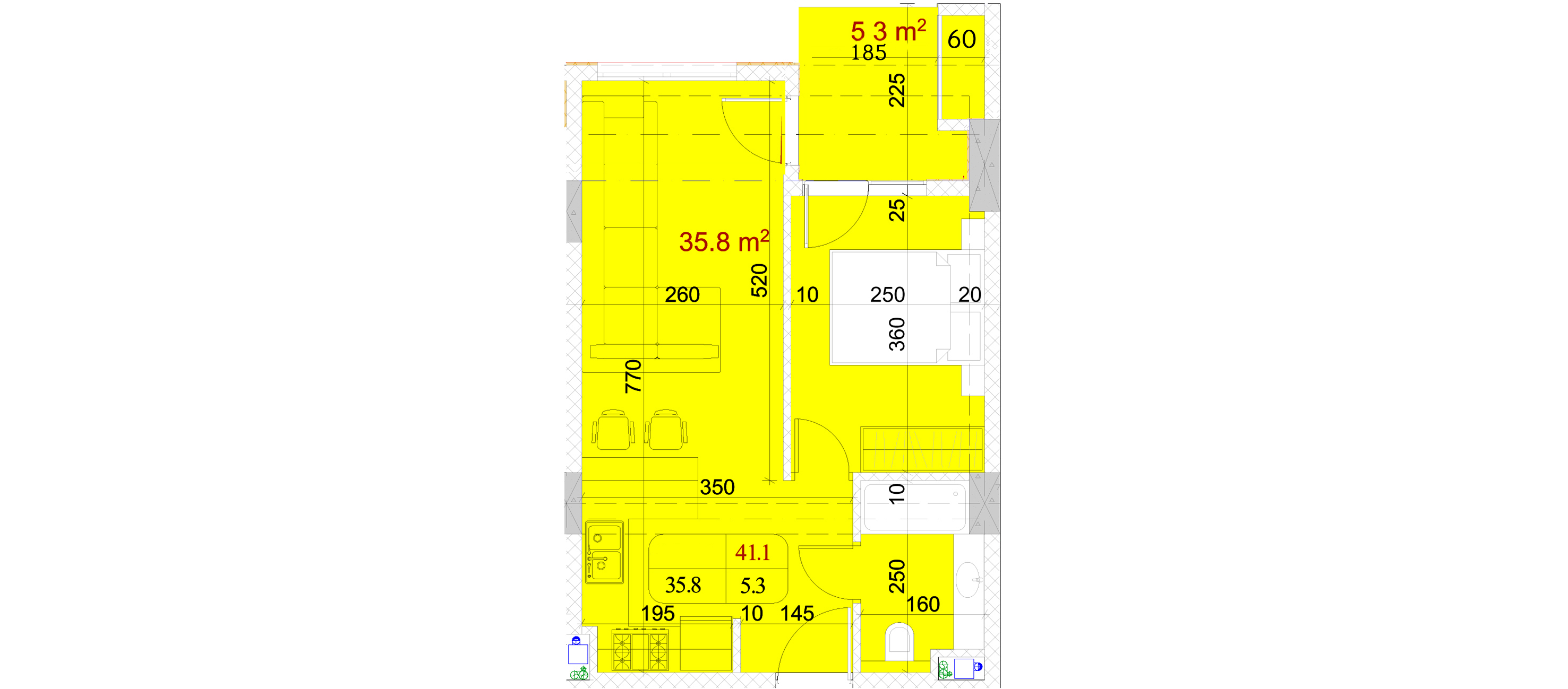 საერთო ფართი.: 41.1 m²