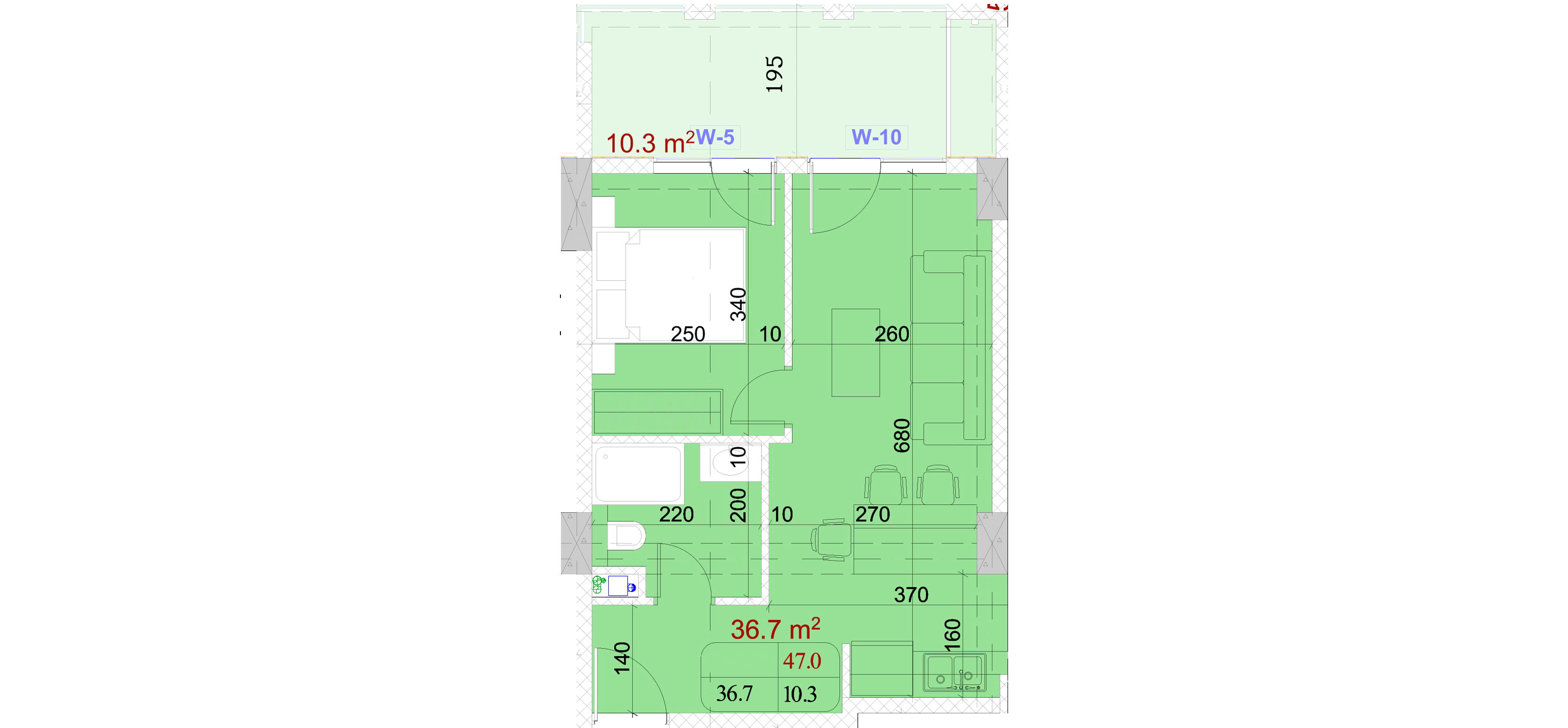 საერთო ფართი.: 47.0 m²